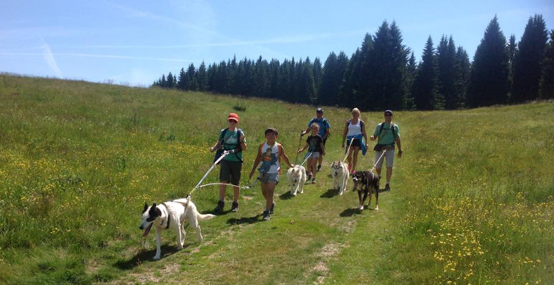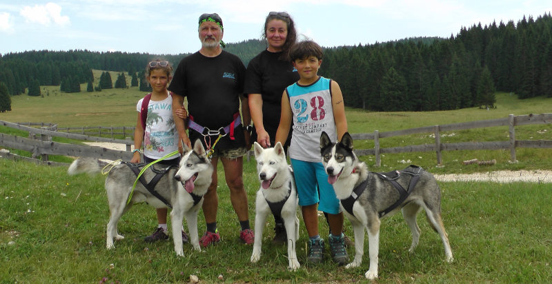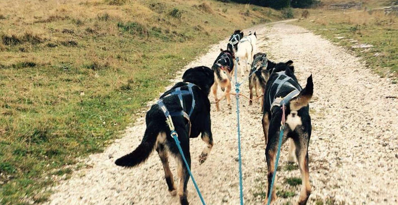 Dog trekking sull'altopiano del Trentino, guidati da cani da slitta (alaskan husky).