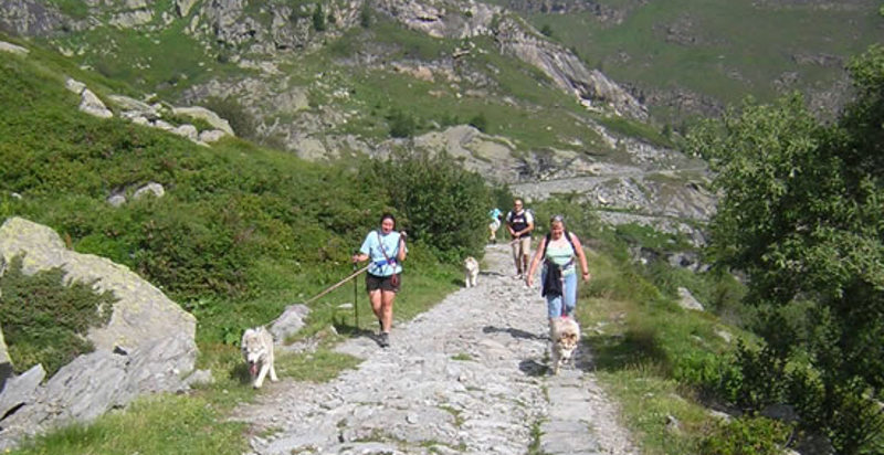 - Escursione a piedi con un cane imbracato al partecipante