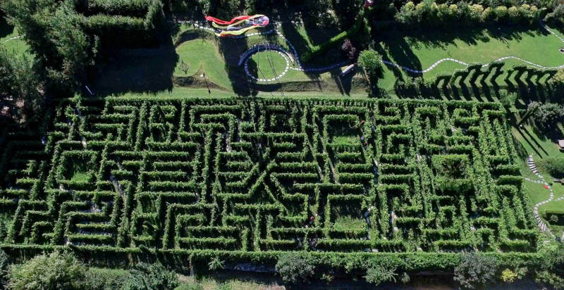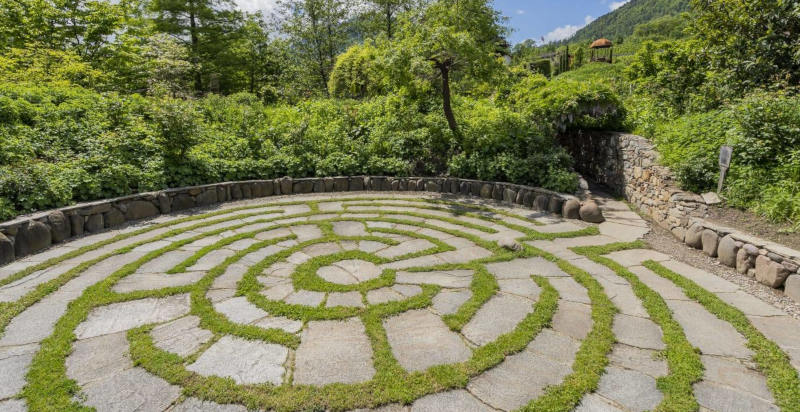 Circondato dal drago che dorme, il labirinto è formato da un alto terrapieno al cui centro si trova il classico labirinto a spirale.