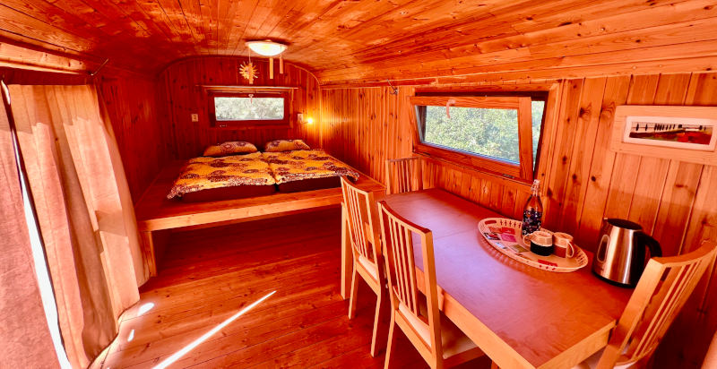 La Wheel House è un'affascinante gipsy caravan, originaria di Praga, la città natale del proprietario dell'agriturismo situato nella campagna maremmana in provincia di Grosseto. Questo carrozzone vintage degli anni '50 è stato un tempo di proprietà di un famoso gruppo circense del Circo Berousek. Dopo una completa ristrutturazione, la Wheel House è stata dotata di un doppio strato di legno di pino per un isolamento termico ottimale. All'interno potrete godere di un comodo soggiorno con un grande letto King Size e un divano-letto per accogliere fino a 3 persone. La Wheel House è anche fornita di elettricità e di una stufa a legna in ghisa, rendendola confortevole anche nelle notti più fredde.