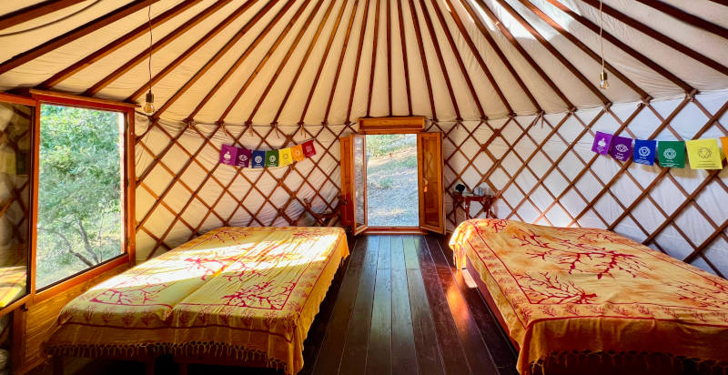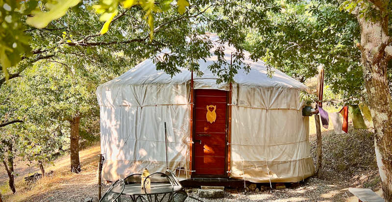 Immagina di svegliarti circondato dalla pace e dalla bellezza della campagna toscana, con una vista mozzafiato sulle colline verdeggianti e la fresca brezza che entra dalla finestra della tua yurta.