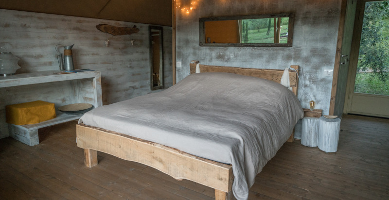 Le luxury tent sono il simbolo di un turismo ecosostenibile, caratterizzate da dettagli green e design ecologico. Ogni tenda, spaziosa e integrata armoniosamente nella natura circostante, offre un'esperienza senza pari. Dotata di bagno privato con doccia, salotto, camera matrimoniale con vista panoramica, armadio, e bollitore con tè e tisane, ogni tenda dispone anche di due terrazze private per ammirare le stelle cadenti e gustare i pasti all'aperto. La doccia esterna sotto il cielo blu della Maremma Toscana, gli arredi in legno naturale fatti a mano e il giardino privato contribuiscono a creare un'atmosfera di tranquillità e relax.