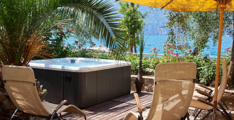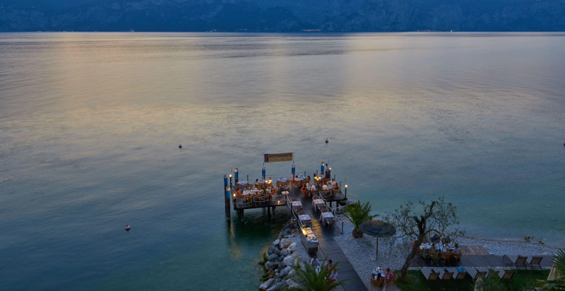 A pochi passi dalla riva, si trova il modernissimo "wellness floor", un intero piano dedicato al benessere, con due cabine per massaggi e trattamenti ayurvedici, oltre all'esclusivo Centro Benessere Dhara. Qui gli ospiti possono rilassarsi completamente, godendo di una vista mozzafiato sul lago. Il pontile dell'hotel offre accesso alle barche e la possibilità di noleggiare pedalò, SUP e canoe, regalando agli ospiti l'opportunità di esplorare il Lago di Garda in tutta la sua bellezza.