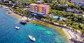 La spiaggia privata dell'hotel è arricchita da una splendida piscina con idromassaggio e da un vasto giardino, dove si alternano alberi di ulivo secolari, palme, rose, bouganvillee e molte altre specie botaniche tipiche della vegetazione mediterranea.