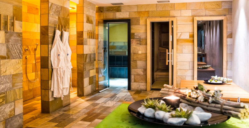 - Sauna in stile tirolese, bagno turco, sauna alle erbe, locale relax con lettini ad acqua e angoli relax, solarium corpo completo