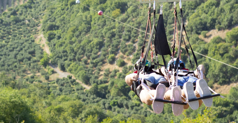 - Volo zip-line singolo della durata di ca. 4 min., 2.225 metri con una velocità massima di 172 km/h, da maggio a novembre, e tutto agosto, sempre di sabato, domenica e festivi