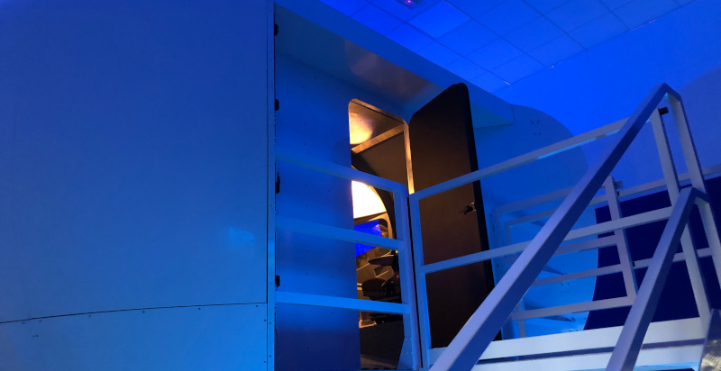Riproduce in modo molto fedele la cabina di pilotaggio di un vero Boeing 737-800NG, l’aereo di linea più venduto al mondo. La cabina come tutte le parti del cockpit sono riprodotte fedelmente in scala 1:1. Tutti i sistemi e gli strumenti sono totalmente funzionanti. Dalla postazione istruttore, si potranno ricreare situazioni di emergenza a cui i piloti dovranno rispondere prontamente. Due sedili supplementari sono installati dietro i piloti in modo da consentire a due persone di poter osservare tutte le manovre di volo e le visuali esterne e partecipare gratuitamente e attivamente all’esperienza.
