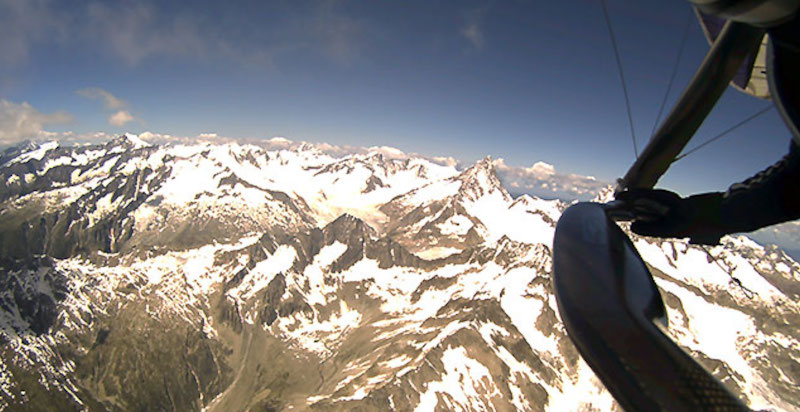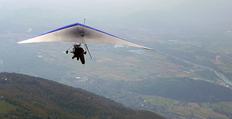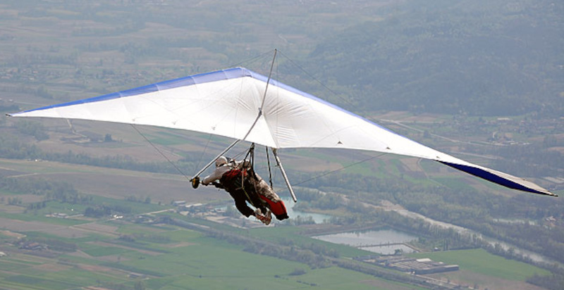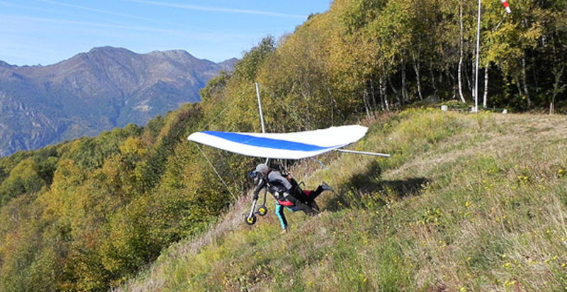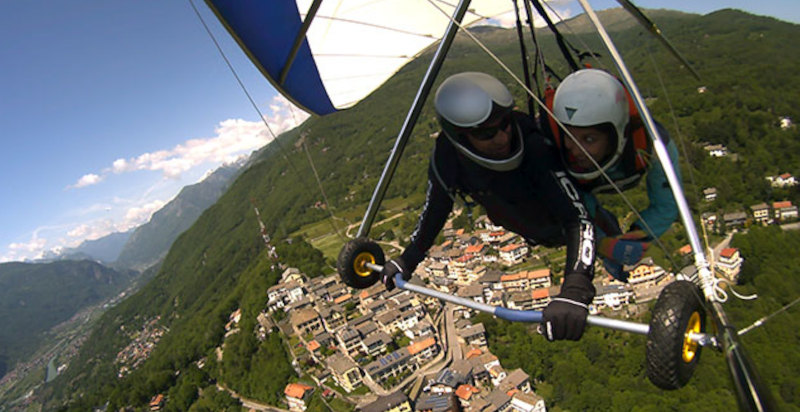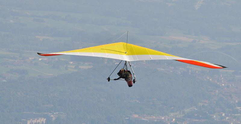 Volo biposto in deltaplano vicino a Ivrea, in provincia di Torino in Piemonte. Decollo da 1.250 metri di altezza dalle pendici del Mombarone per un volo con circa 1000 metri di dislivello.