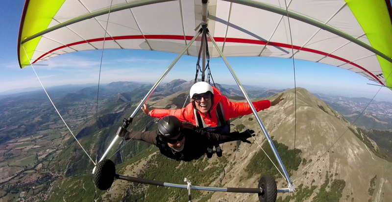 Il volo in deltaplano sul Monte Cucco è accessibile a tutti e completamente sicuro. I piloti ed istruttori sono qualificati e hanno una vasta esperienza di volo. I voli in biposto sono disponibili tutto l'anno, a condizione che le condizioni meteorologiche siano ottimali.